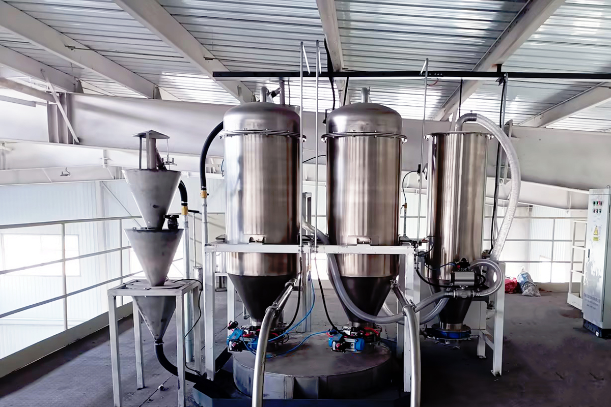 【工作原理】: 物料從吸料點吸入,然后再通過管道輸送到料倉中,并在料倉中和空氣分離,空氣則透過過濾器排出,待料倉充滿物料時,真空泵自動關閉,真空吸料機內的壓力達到平衡。放料閥開啟...